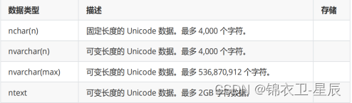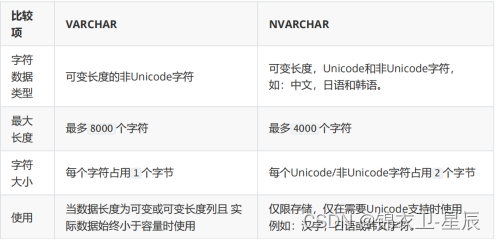 以上两种字符串,他们数据类型的名称是不是极其相似?区别基本就是多了一个n,但是他们有一个最本质的区别:unicode字符串可以储存语言文字,如:汉语、日语。而character字符串不行。