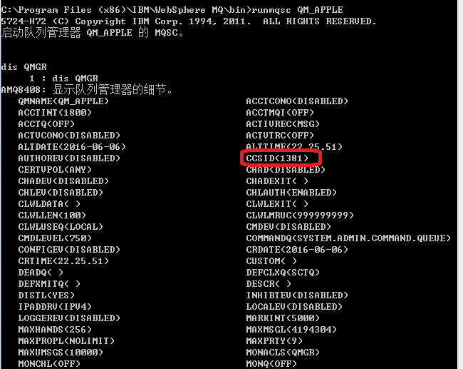 安装好了MQ Server端并新建了QMGR,可以通过上面方法更改其MQCCSID,我们环境中所有QMGR的MQCCSID都是1381。