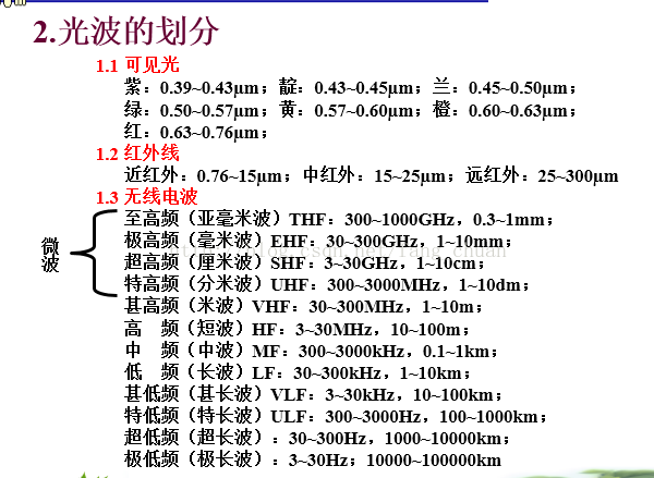 以上就是哭泣鸡翅最近收集整理的关于光波波长划分和无线电波频段划分的全部内容,更多相关光波波长划分和无线电波频段划分内容请搜索靠谱客的其他文章。