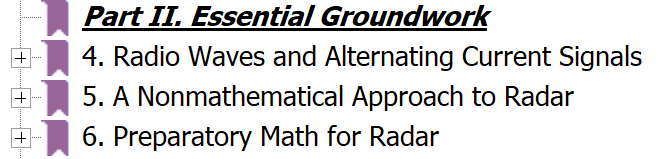 今天开始进入第二篇-必要的准备知识,全部的篇章结构见我的第一篇文章“雷达导论 引言”。第二篇有3个章节,如下图所示,分别是第4章-无线电波与交变电流信号、第5章-用一种非数学的方法理解雷达、第6章-雷达的数学预备知识。