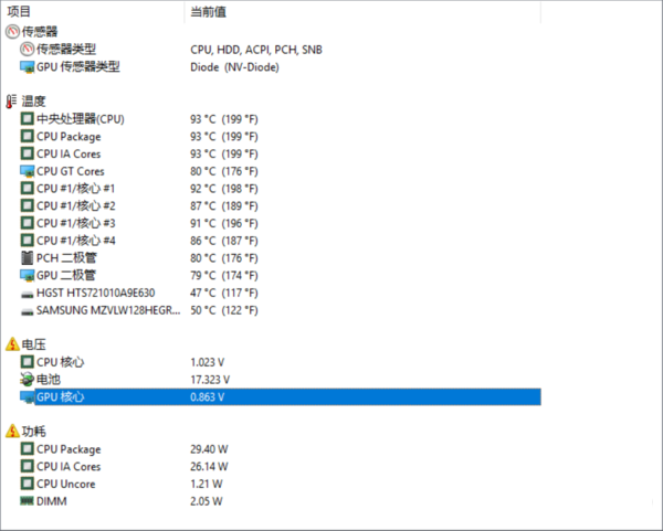 在游戏运行30分钟后,暗影精灵III Pro硬件温度最高达到了93℃,整体散热还算是表现不错。