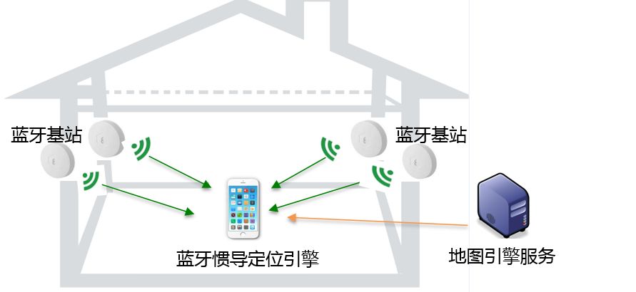 3)当终端设备进入beacon信号覆盖的范围,测出其在不同基站下的RSSI值,然后再通过手机内置的定位算法测算出具体位置。