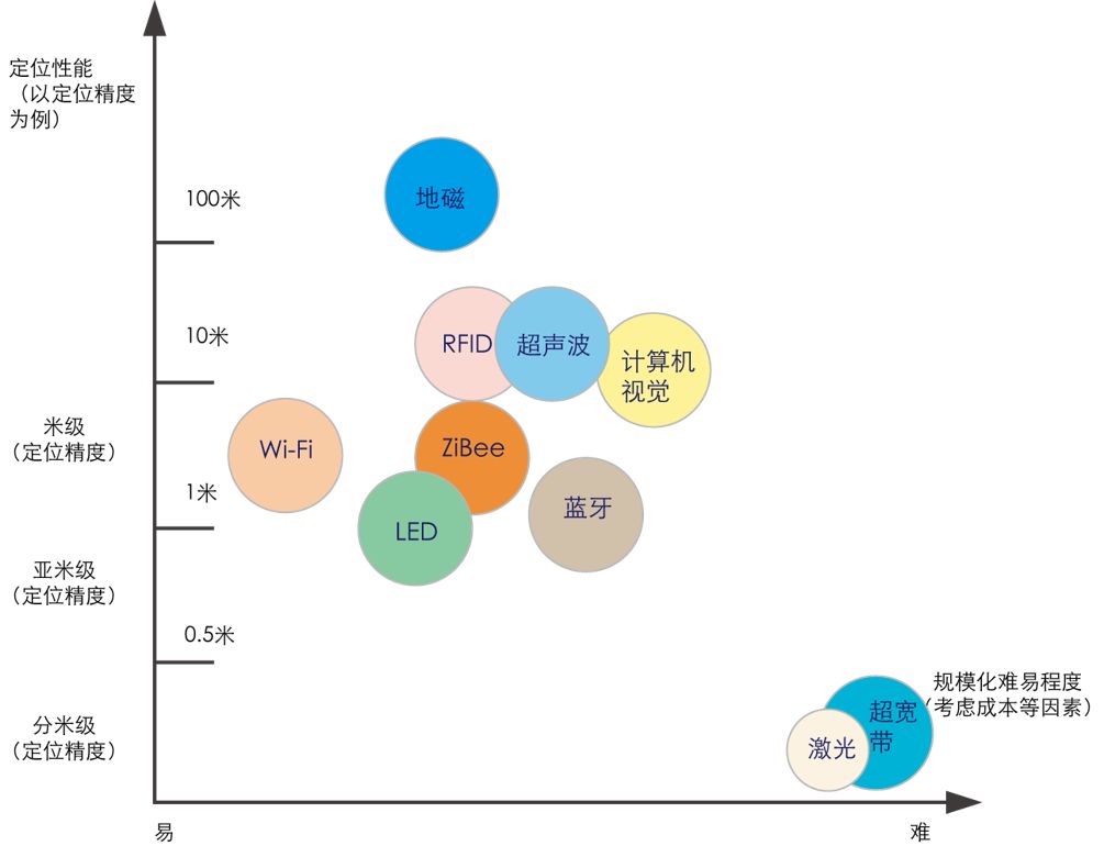 精度:对精度的要求不同的应用差别很大,比如在超市或仓库找一个特定的商品可能需要1米甚至更低的精度,如果在购物中心寻找一个特定的品牌或餐馆,5-10米的精度就能满足要求。