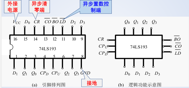 - (1) 74LS193的引脚示意图和逻辑功能图