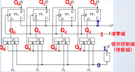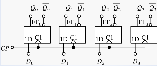 - (1) 由多个边沿D触发器组成的集成寄存器