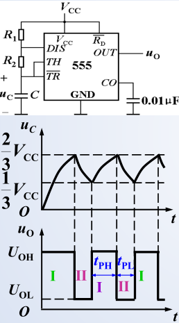 C 如此循环充电和放电,使电路产生振荡,输出矩形脉冲。