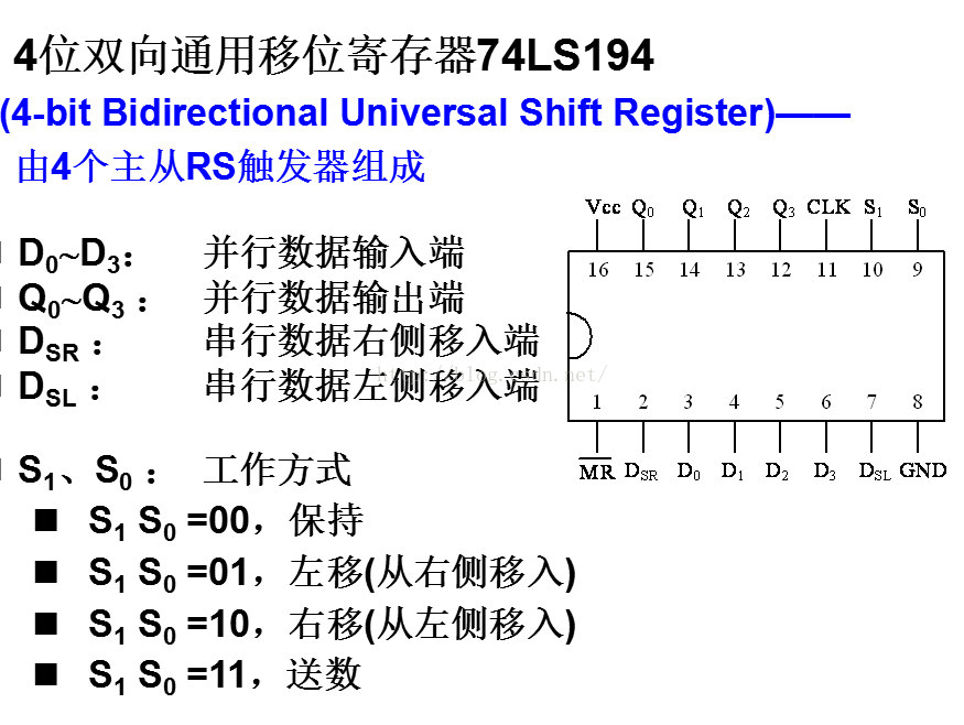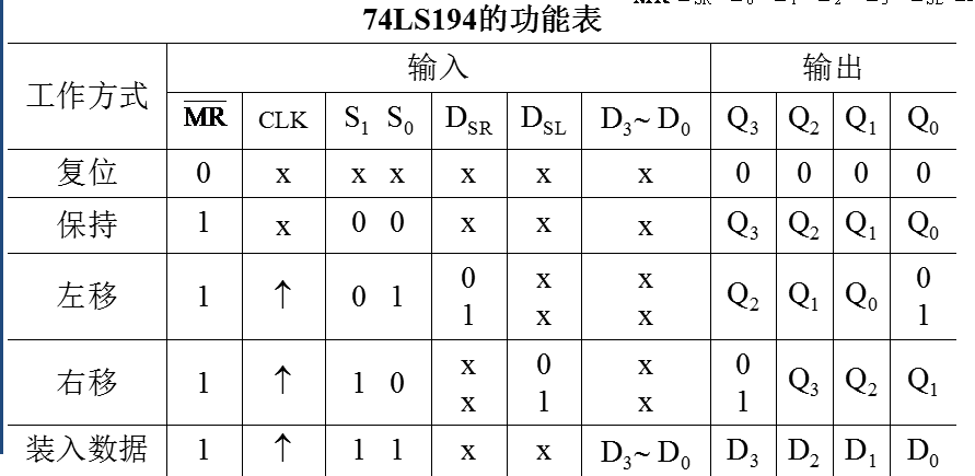 2.把第一块的S1,S0接高电位,~MR=1,也就是处于“装入数据”的状态,第二块的输出Q0作为第一块D3的输入,第一块输出Q3,Q2,Q1分别第一块的D2,D1,D0的输入,第一块的输出Q0作为第二块D3的输入,第二块的输出Q3,Q2,Q1作为第二块D2,D1,D0的输入(实现前一个灯熄灭,后一个灯亮);