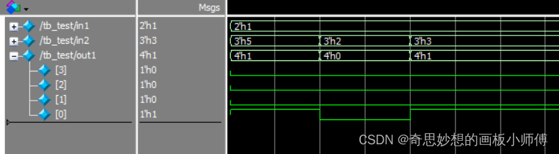 查看波形图可知:四位的out1只有第0位置 “1”其余位都为“0”