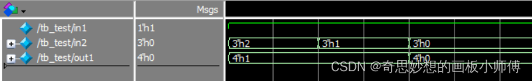 仿真文件意思是初始值 in1为1,in2由 010 变为001 变为000