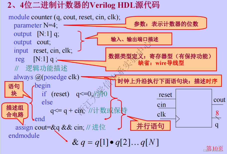 assign cout=&q && cin; // 与q表示4比特的q各自相与,再与cin