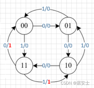 接下来我们把状态转移表变成状态转移图: