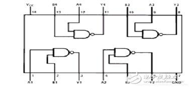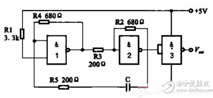 可用于进行与非判断,基本RS触发器,与非门方波发生器等。其中与非门1、2与外界RC时间常数元件组成振荡电路,与非门3为缓冲输出级。只要改变C的容量,便可获得不同频率的方波输出。