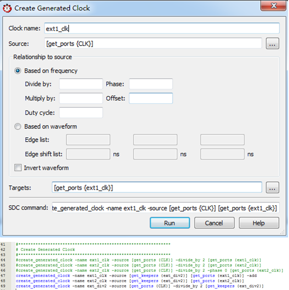 create_generated_clock -name ext1_clk -source [get_ports {CLK}] [get_ports {ext1_clk}]