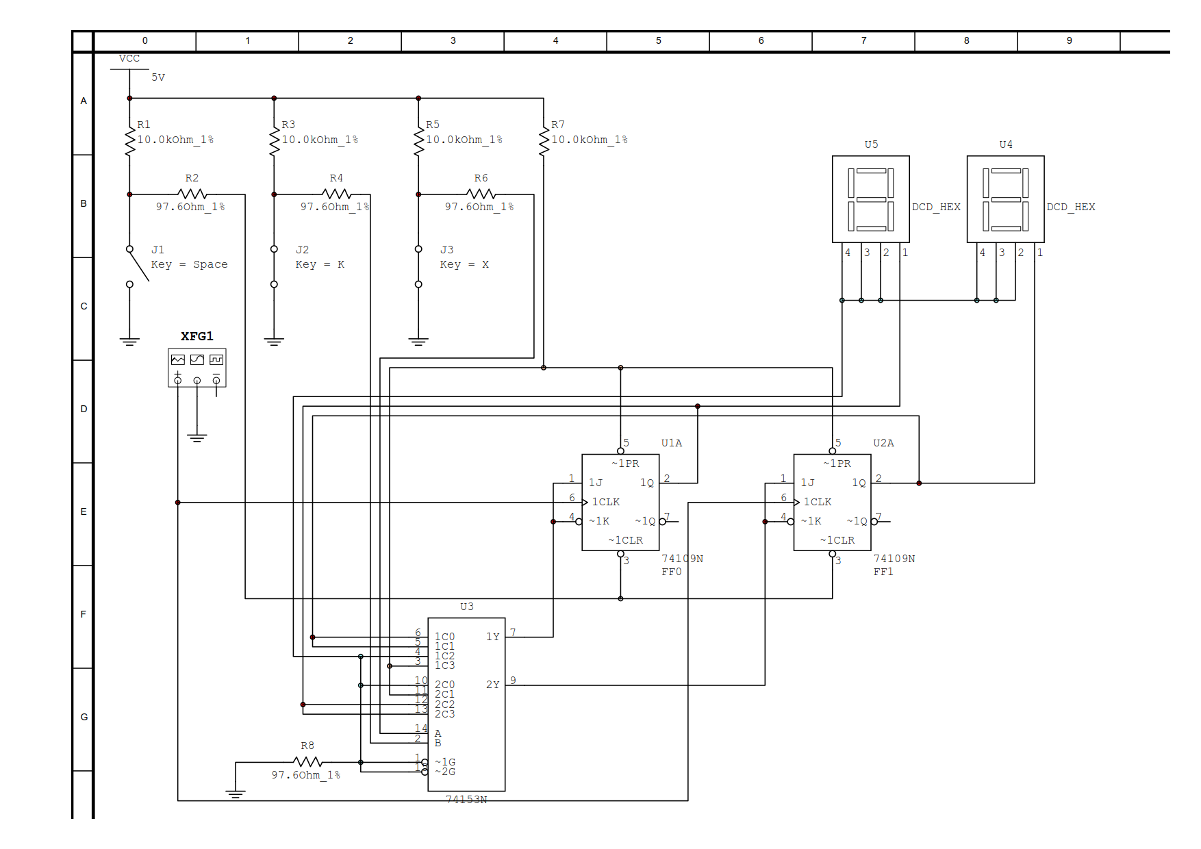 我是靠谱客的博主 单纯手套,这篇文章主要介绍试用D触发器和必要的门电路(或最小数量的中规模集成电路芯片)设计两位串行输入、并行输出双向移位寄存器. 寄存器有X、K两个输入端, K控制移位方向, X输入数据(题目全文见本博文示),现在分享给大家,希望可以做个参考。