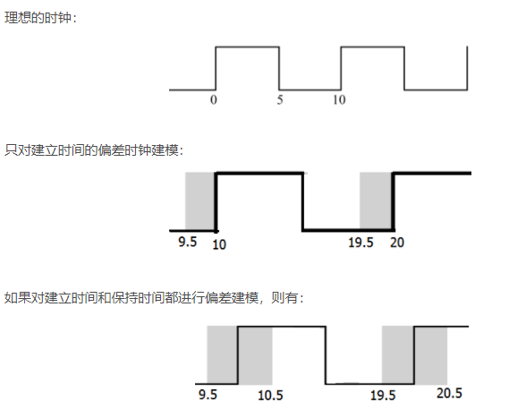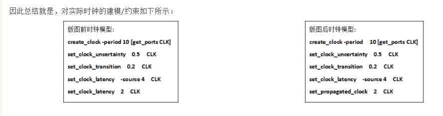 基本的时钟建模就OK了,下面进行总结并给出我们这个例子中使用的约束脚本,理想时钟和实际时钟的对比,如下图所示: