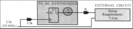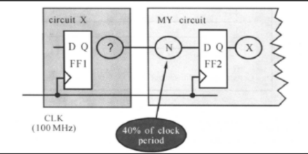 如果我们已知输入端口的外部电路的延迟(假设为4 ns,包括翻转延时和外部的逻辑延时),就可以很容易地计算出留给综合电路输入端到寄存器N的最大允许延迟: