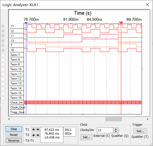 用标尺截取N个时钟,观察每个时钟对应的状态,如果状态是按照N进制加法计数器的状态转换图变化,则设计正确,记录时序图。