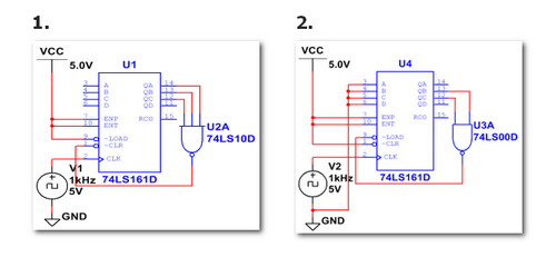 (1)分析:74LS161为4位二进制计数器,M=16,N=7,M>N,因此可以使用反馈清零法或反馈置数法进行设计。