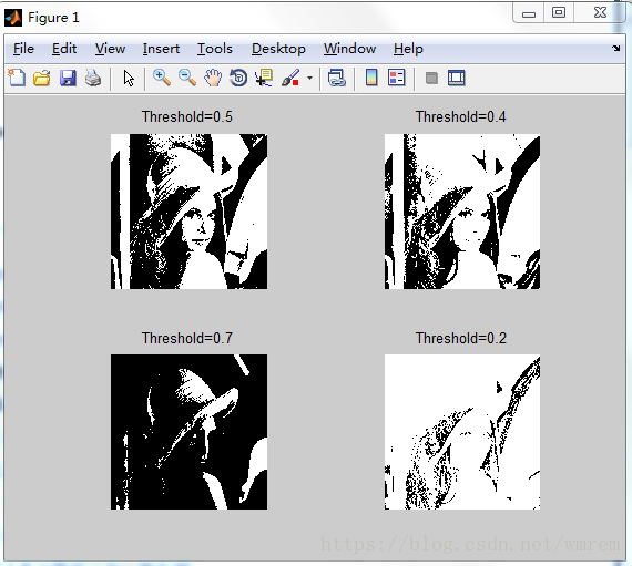 1.将灰度图像根据不用阈值转换为二值图像