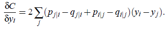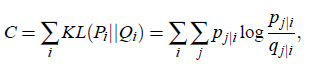 要么是大的正数要么是小的负数,总之与0的偏差很大。这样,利用优化算法来最小化C的值。因为KL不是对称的,也就是说,使用距离很远的点(降维后的空间,即