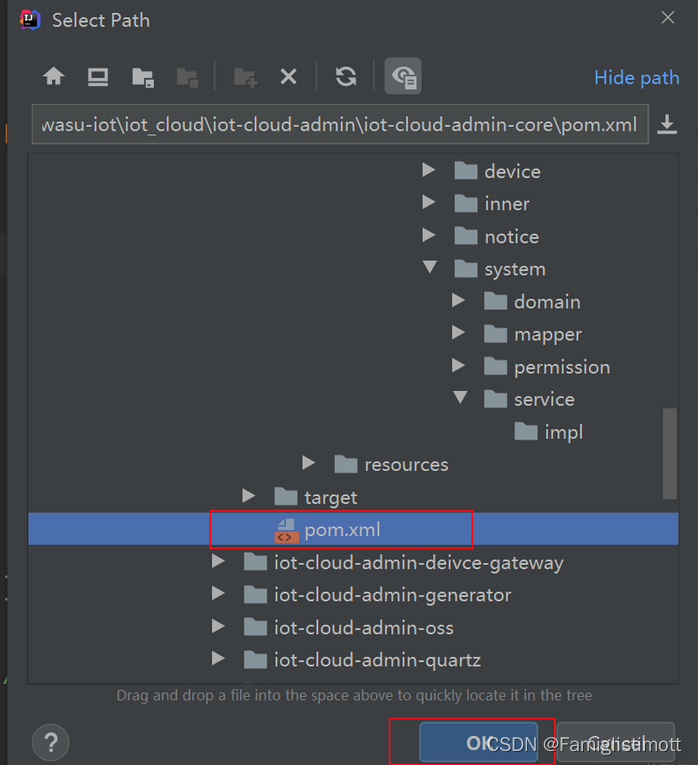 3、最后,选择本项目的 pom.xml 点击 OK 即可解决!