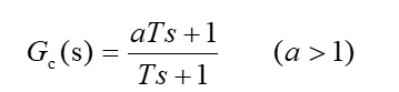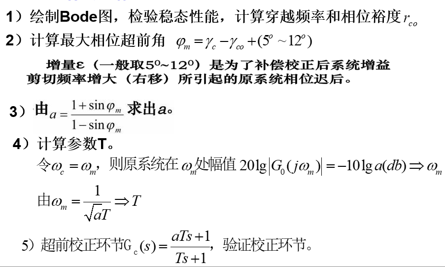 超前校正:通过控制器的相角增益增加系统的相角裕度;