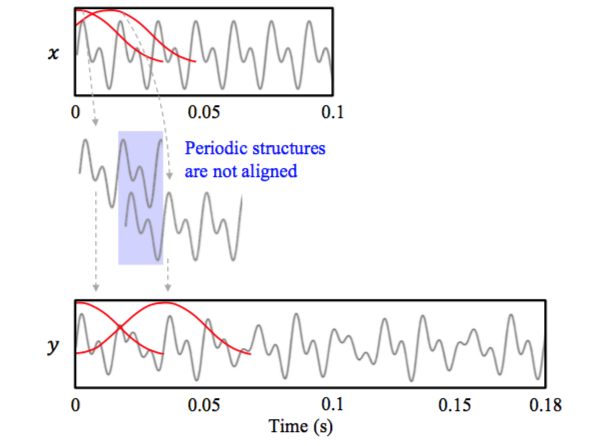 但是采用这种 Overlap 的方式虽然可以防止连接处的信号产生跳变,但不能保证每一个窗内覆盖的信号都处于周期中的相同相位,或者说两个窗内信号周期的起始位置不相同。这就会导致常说的“相位失真”。