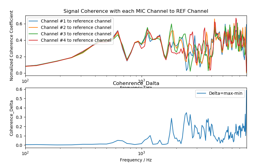 衡量两个变量之间的相关程度叫做相干性(Coherence)。在该项测试中,相干性衡量的是各MIC通道和REF通道之间的相关程度。