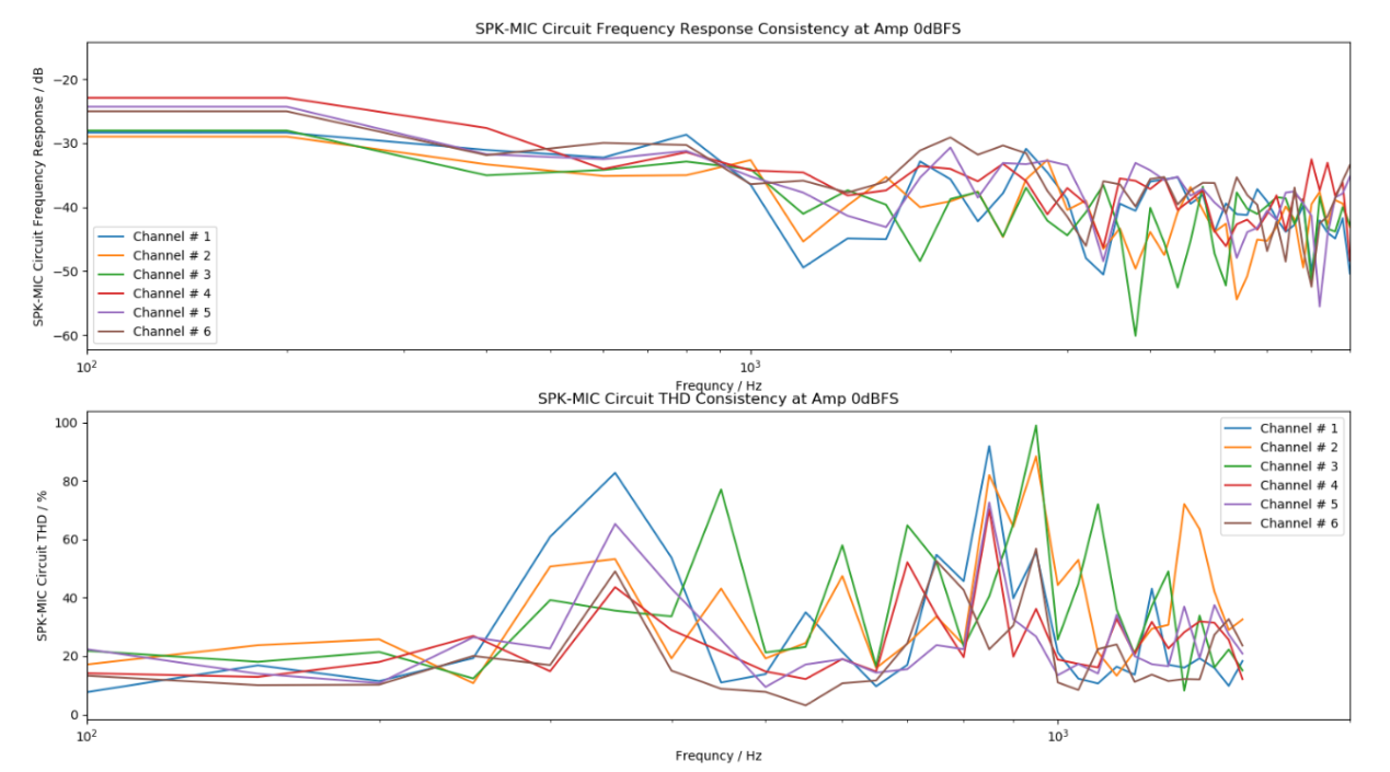 待测设备任意MIC通道间的频率响应及谐波失真的相关程度为MIC通道一致性(MIC Consistency),标识为Consistency。在该项测试中,MIC通道一致性可以用频率响应曲线和谐波失真曲线两个指标来表征。