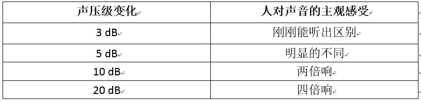 通过举个例子来帮助理解上面这张表。假设你原来用一台播放器听歌,再打开一台一模一样的播放器,声音大了一倍吗?不,同样的声源叠加,声压级才变化3dB,一般人刚刚能听出区别。而你同时打开8台一模一样的播放器,声压级才上升9dB,才差不多让你感觉到两倍响的程度。