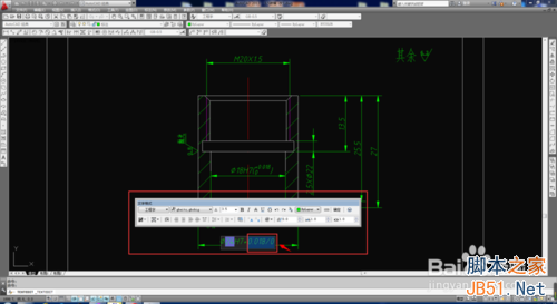 4、双击该尺寸,弹出文字格式框,然后再选中矩形框中的尺寸;