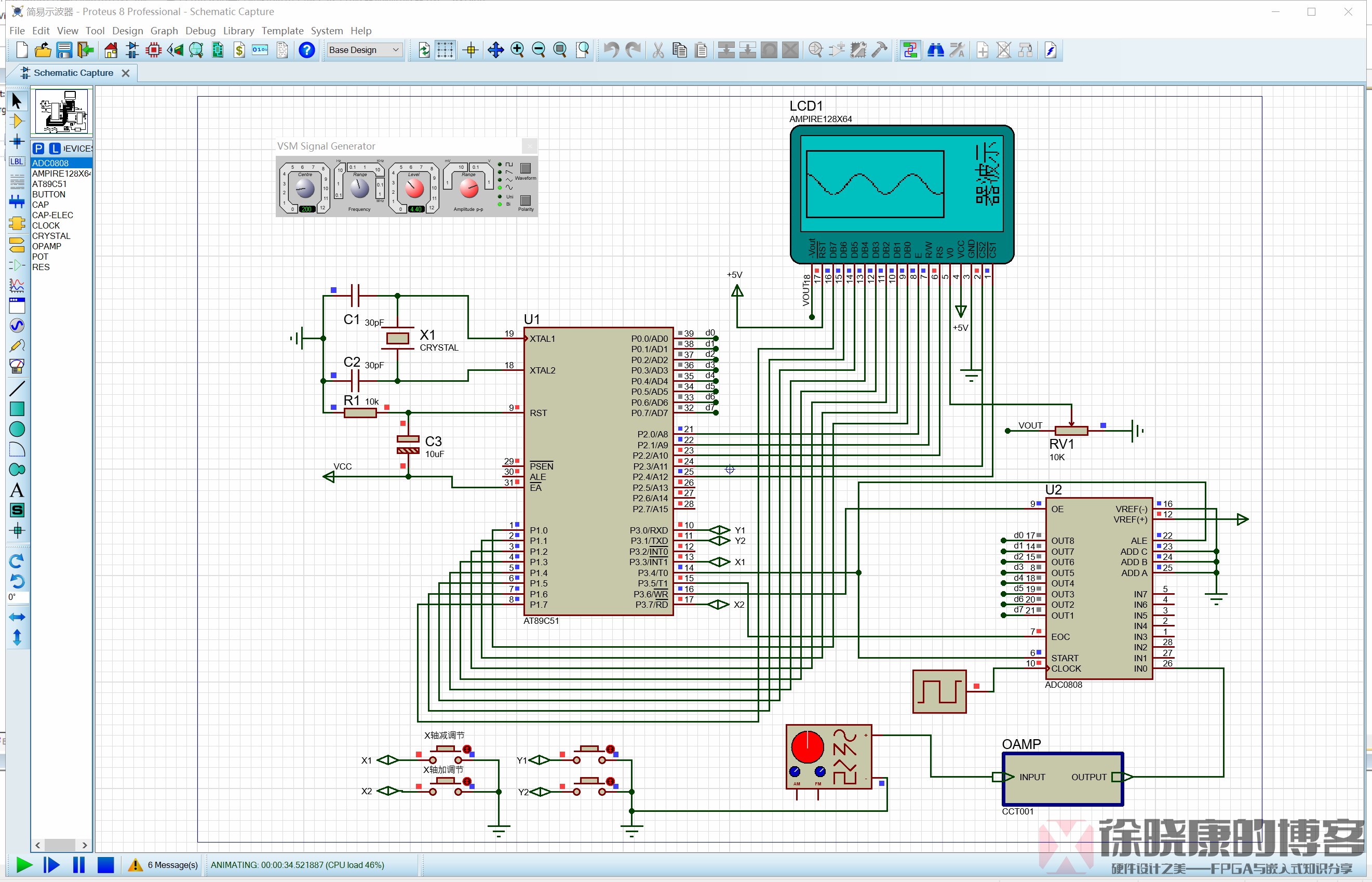 原理图界面与波形观测界面: