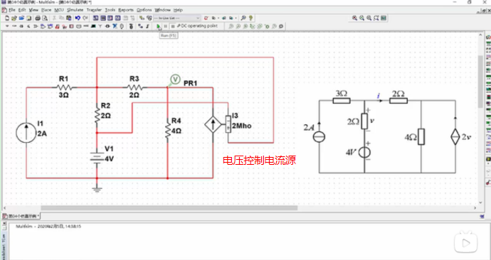 Multisim14中有电压控制电压源、电压控制电流源、电流控制电压源和电流控制电流源4种受控电源,选择对应受控源连到电路中,见下图。