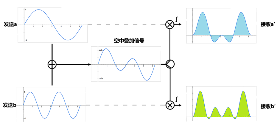 a接收信号乘sin(t),积分解码出a信号。