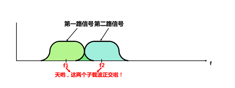 靠得很近的FDM,实际中考虑到硬件实现,解调第一路信号时,已经很难完全去除第二路信号的影响了两路信号互相之间可能已经产生干扰了。