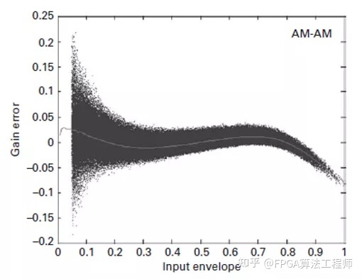 图8 测量增益幅度和估计AM-AM曲线。AM-AM曲线是测量增益幅度的平均值