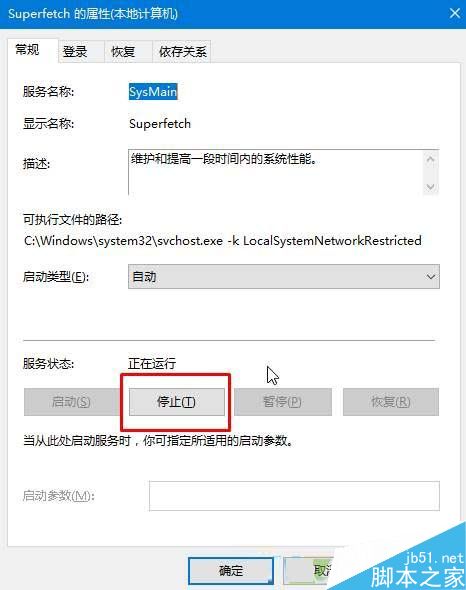 2、双击打开【superfetch】服务,点击【停止】就可以马上缓解磁盘100%的情况;