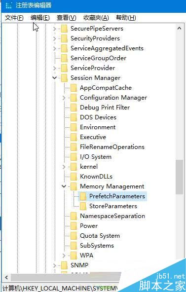 4、依次展开:HKEY_LOCAL_MACHINE--system--controlset001--control—Session manager--Memory management--PrefetchParameter