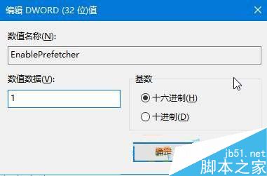 5、在右侧双击打开“enableprefetcher”值,将其键值修改为“1”即可。
