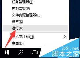 1、右击桌面左下角的“Windows开始”按钮,从其右键菜单中点击“运行”项以打开“运行”窗口。