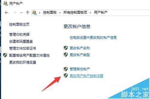 2、从打开的“控制面板”界面中,依次进入“用户账户”-“更改用户账户控制设置”项进入。