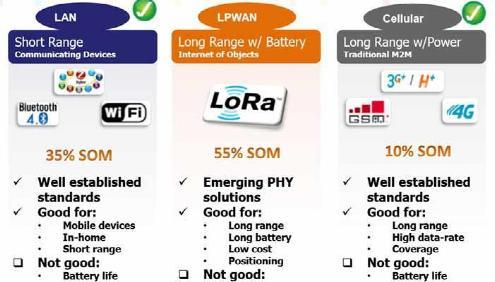 就在ZigBee和ZWave两家网络技术明争暗斗的时候,一种新型的可远距离传输数据并且有着超低能耗的网络技术悄悄地发展起来,这种技术叫LoRa,是由升特公司(Semech)发布的一种专用于无线电调制解调的技术,它与其他如FSK(频移键控)、GMSK(高斯最小频移键控)、BPSK(二进制相移键控)及其派生的调制方案形成竞争关系。