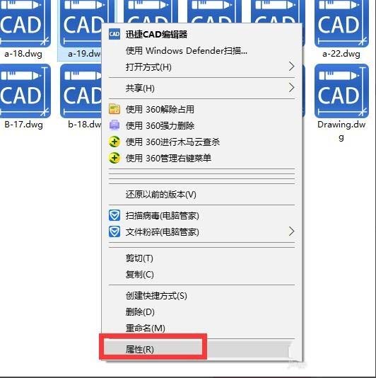 1、如果CAD图形文件有写保护的可以选择“属性”项以打开文件属性窗口。