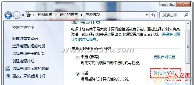 控制面板→硬件和声音→电源选项,再单击“改变计划设置”