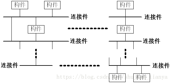 ◎ 所有构件之间的通讯是通过以连接件为中介的异步消息交换机制来实现的;