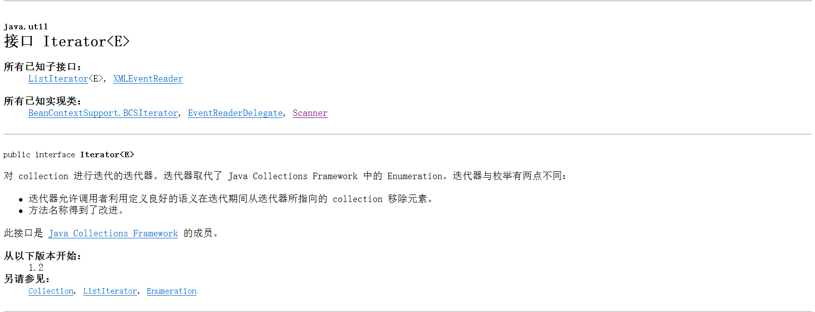 public Iterator<E> iterator():获取一个迭代器,用于遍历集合中的元素。