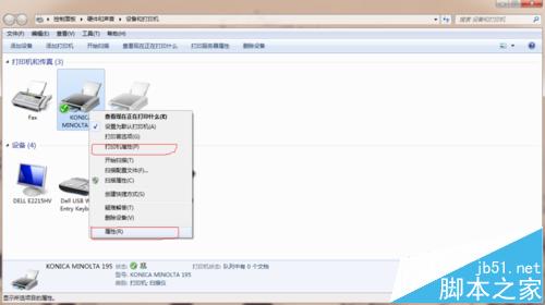 7、右击打印机图标,选择“打印机首选项”选项
