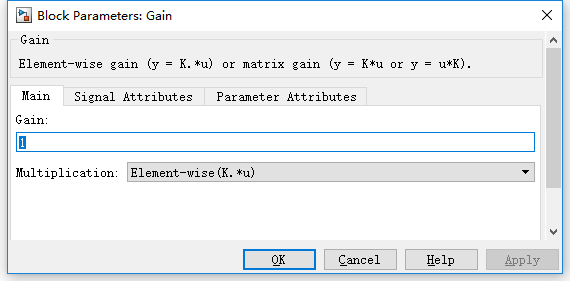 模块添加完成后,如果想更改该参数,需要双击Gain模块,打开参数对话框。