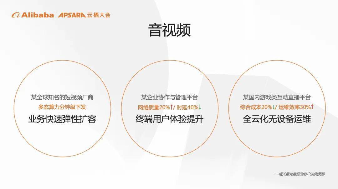 同时,基于边缘云就近的特征以及高容量的带宽储备,阿里云边缘云帮助企业协作平台或音视频平台,提升20%的网络质量,降低40%的网络时延,大大提升终端用户体验。