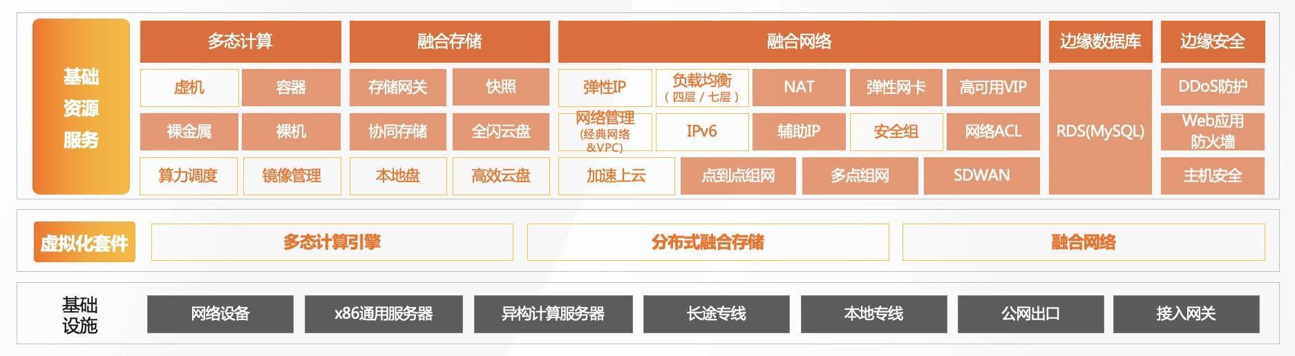 l 在融合网络上,提供了标准的公共云网络套件和具有边缘云特色的点到点组网、多点组网的能力。